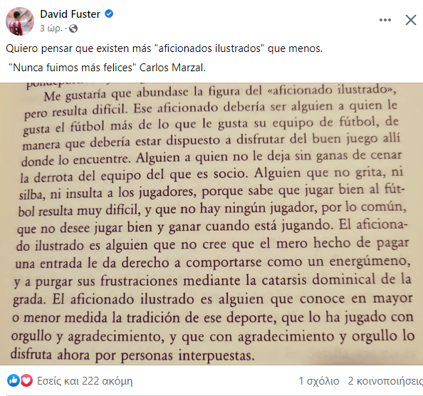 Ένα κείμενο για τον καλλιεργημένο φίλαθλο